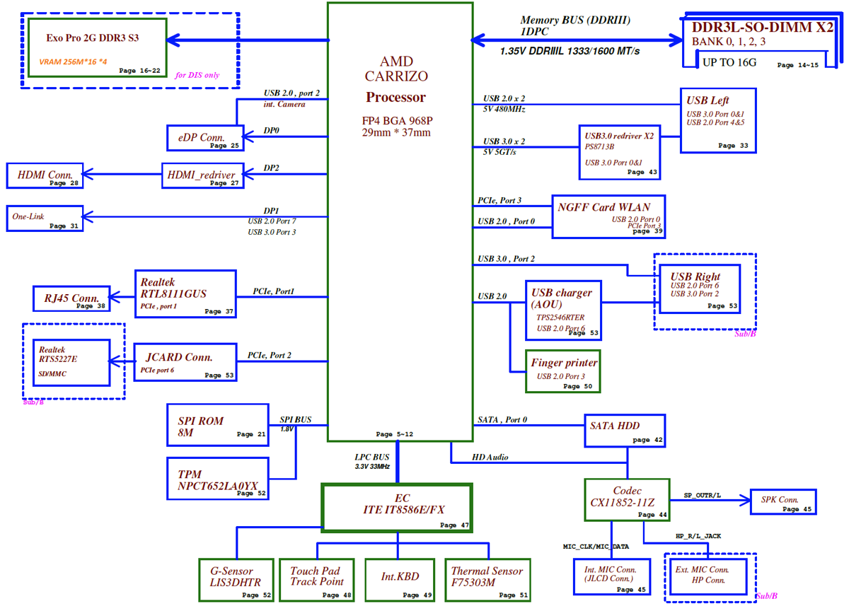 Also included: — Power Block Diagram Major components: CPU/RAM: AMD CARRIZO + DDR3L GPU: UMA or DIS (AMD Exo Pro 2G + DDR3) EC: ITE IT8586E/FX File type : PDF Language : English Pages: 60 |