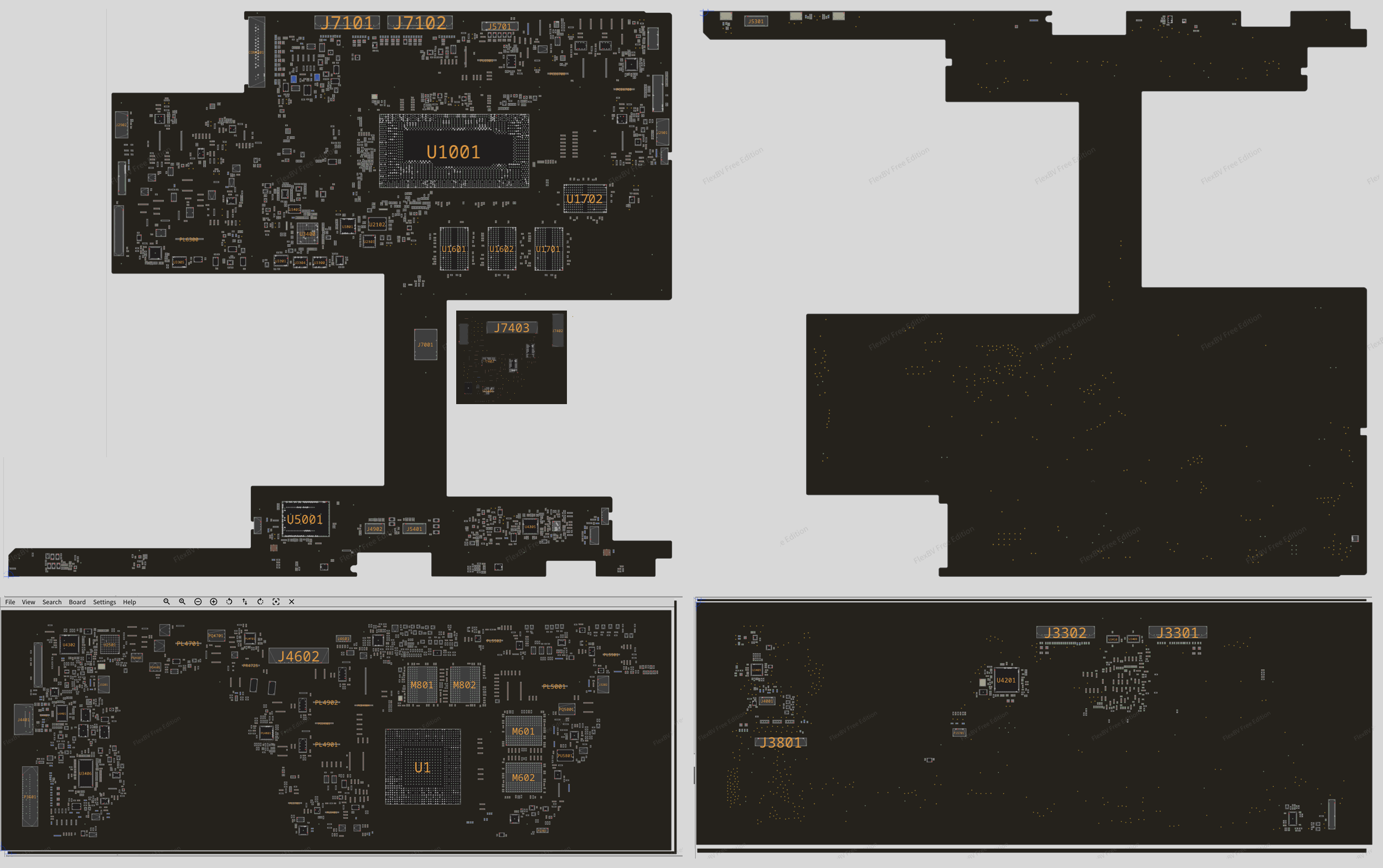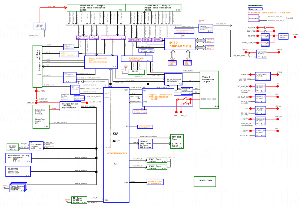 Known Motherboard (Top Board) p/n : Intel Core i7-1065G7 / 16Gb RAM - M???????-0?? (UNKNOWN #) Intel Core i7-1065G7 / 32Gb RAM - M???????-0?? (UNKNOWN #) Known "GPU Board" p/n : M???????-0?? (UNKNOWN #) Known "I/O Board" (Cardreader/USB) p/n : M???????-0?? (UNKNOWN #) You will get: - For Motherboard (also known as "Top Board"): 1) Schematic Diagram 2) BoardView file and BoardView Software 2) Silkscreen / 2 PNG files 3) Clock Distribution Diagram 4) Power On Sequence and Reset Step-by-Step Block Diagram 5) Power Flow Diagram (Power Map) 6) I2C & SMBUS Map - For "GPU Board" : 7) Schematic Diagram 8) BoardView file and BoardView Software 8) Silkscreen / 2 PNG files 9) Power On Sequence Block Diagram 10) Power Down Sequence Block Diagram 11) Functional Block Diagram 12) Power Distribution Diagram 13) SMBus Block Diagram - For "I/O Board" (Cardreader/USB) : 14) Schematic Diagram 15) BoardView file and BoardView Software - For "GPU TB Board" 16) BoardView file and BoardView Software Main components: - CPU/HUB/RAM: Intel "Ice Lake" / LPDDR4x - GPU: DIS (N18P-G0 MaxQ [nVidia GeForce GTX 1650 Max-Q + 4 GB GDDR5]) - SAM (Sensor Aggregator Microcontroller): LPC54S001JEV180 (Top Board) + MK24FN1M0VDC12R (GPU Board) File types : Schematic diagrams : PDF (Searchable) BoardView files: PCB Component Placement Diagrams (Silkscreens): PNG files (High Resolution) |