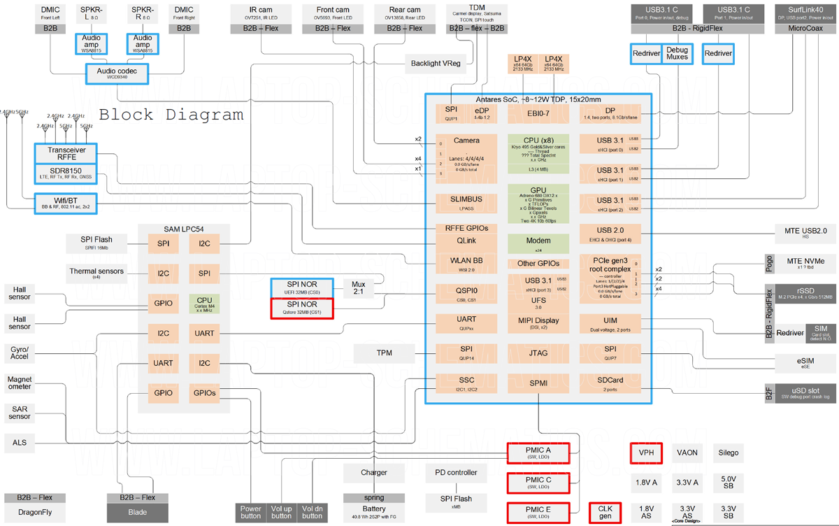 Known Motherboard p/n : M1114059-007 M1109055-007 M1099003-004 M1109055-006 Attention! There are 2 different schematic diagrams for these motherboards. To get the correct schematic diagram - please provide us with an additional information with your order: In case if your motherboard is M1114059-007 - just wrote this #. For other motherboards # M1109055-007, M1099003-004, M1109055-006 - Please provide further information: 1) MB # 2) Check your MB and let us know IC # (see forth picture. It could be 43314 or 42544) What's included : 1) Schematic Diagram 2) BoardView file and BoardView Viewer 2) Silkscreen / PDF file / Searchable 3) Power Distribution diagram (Power Tree) 4) I2C & SMBus Map 5) List of Test Points Main components: - SoC/RAM: Snapdragon SC8180X (Microsoft SQ1-3.00 GHz or SQ2-3.15 GHz )/ LPDDR4X - GPU: Adreno 685 for SQ1 / Adreno 690 for SQ2 - SAM (Sensor Aggregator Microcontroller): LPC54S001JEV180 File types: Schematic Diagrams : PDF (Searchable) BoardView file : PCB (Searchable) Silkscreen : Searchable PDF file (Searchable) |