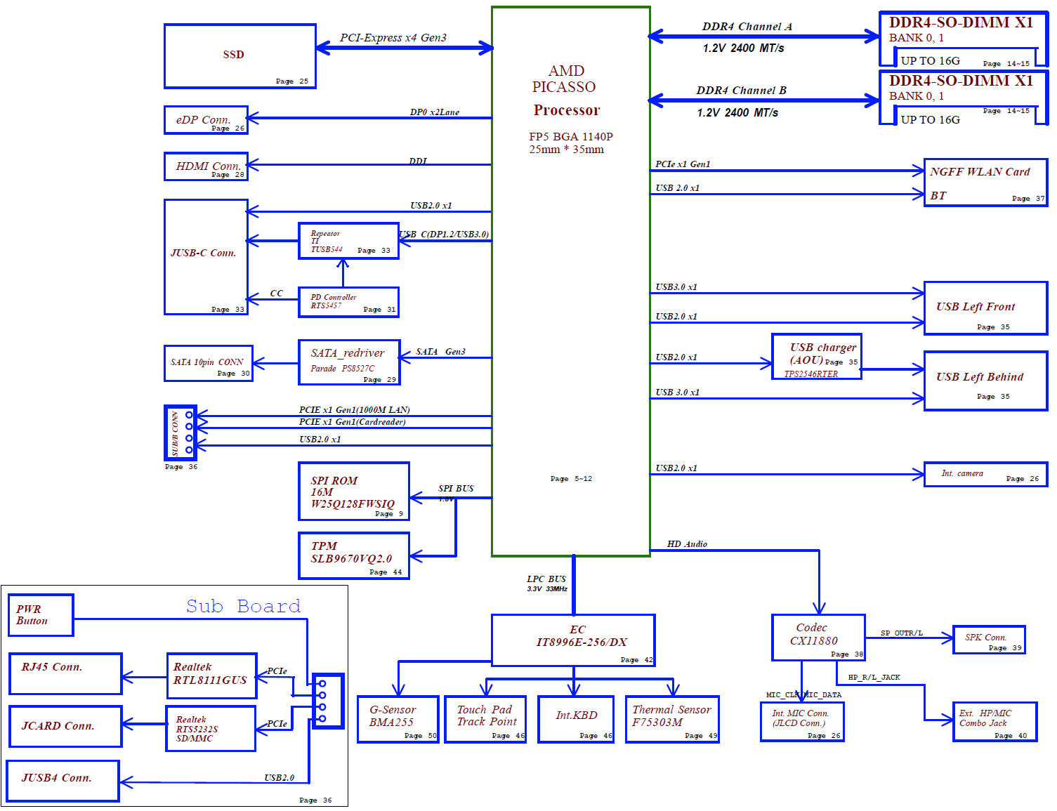 What's included : - 2 Schematic Diagrams for Motherboard and I/O Board - 2 BoardView files for Motherboard and I/O Board + BoardView software - Silkscreen for I/O Board - Power Block Diagram Main components: - CPU/HUB/RAM: AMD Raven Ridge FP5 (Picasso) / DDR4 - GPU: UMA - EC: ITE IT8996E-256/DX File types : Schematic Diagram(s) : PDF / Searchable Silkscreen(s) : PDF / Searchable BoardView file(s) : .TVW Language : English |