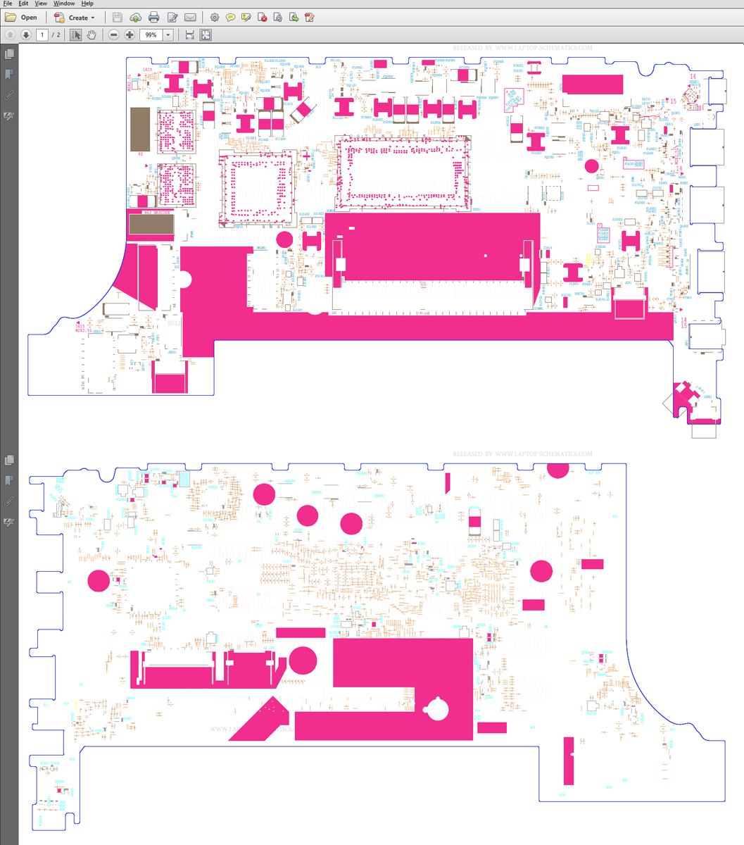 What's included: - Schematic diagram for motherboard - Additional schematic diagram for I/O Board - BoardView file* for MB (*Component Placement Diagram / Silkscreen / Searchable PDF file) Major components: CPU/HUB/RAM : Intel CometLake-U / DDDR4 GPU/VRAM : UMA or DIS (AMD R19M-P25-70 or R18M-M2-60 + GDDR5) EC : IT8227E-256 LAN : R8111GUS Audio : CX11880-11Z SPI Flash: : W25Q128JVSIQ, W25Q64JVSSIQ USB : RTS5455 TPM : ST33HTPH2E32AHC0, NPCT750LABYX Fingerprint : JYAA139A Power : G524B1T11U TPS22976DPUR SYV634DEC NX5P3290UKZ NX20P5090UK TPS22966DPUR TPS22971YZPT NB693GQ-Z RT3662ACGQW RT9059GQW NB693GQ-Z NCP81253MNTBG NCP81151MNTBG NCP81215PMNTXG RT8068AZQW SYX198BQNC LV6228CGQUF BQ25700ARSNR G718TM1U File type : PDF (Searchable) Language : English The BoardView file* (*Component Placement Diagram (Silkscreen) is a Searchable PDF file! It's not a BoardView file like .BRD, PCB, CAD, etc! |