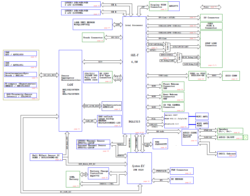Microsoft Surface Laptop 1st Gen (m3-7Y30 CPU), Motherboard BoardView file and Schematic diagram