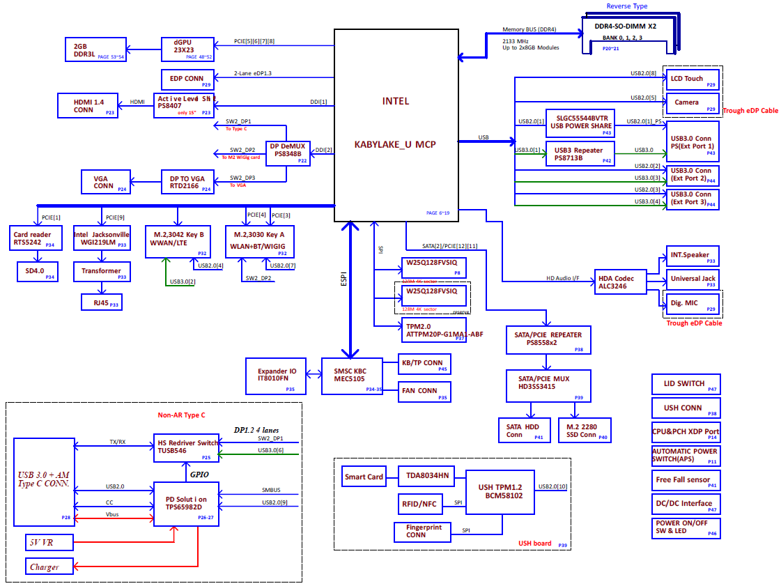 MB p/n CDM80 LA-E092P What's included: — Schematic Diagram for MB — BoardView file and BV Software — Power Rails — SMBus Block Diagram — Timing Diagram for S5 to S0 mode Main components: - CPU/HUB/RAM : Intel KABYLAKE_U / DDR4 - GPU/VRAM : DIS GM108-ES-S-A1 + 2Gb DDR3L - EC : MEC5105 File types : Schematic Diagram : PDF Silkscreen : N/A BoardView file : FlexBV Language : English |