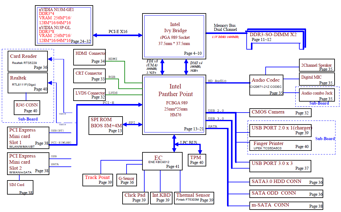 Also included : Power On Sequence diagram Major components: Intel Ivy Bridge + Panther Point PCH GPU: Integrated (UMA)/nVIDIA N13M-GE1 or N13P-GL(DIS) KBC: ENE KBC9012 File type : PDF (Searchable) Language : English |