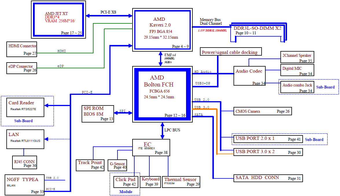 Also included: BoardView file (Silkscreen. Searchable PDF file ) Power Sequence timing diagram SMBus block diagram Major components: AMD Kaveri 2.0 Processor + Bolton FCH GPU: Integrated (UMA)/ AMD JET-XT or Topaz-XT (DIS) KBC: ITE8586EX File type : PDF (Searchable) Language : English |