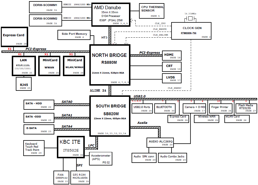 Lenovo EDGE series laptops (ThinkPad) Edge 14 (Type 0199) (UMA GPU), motherboard Schematic diagram