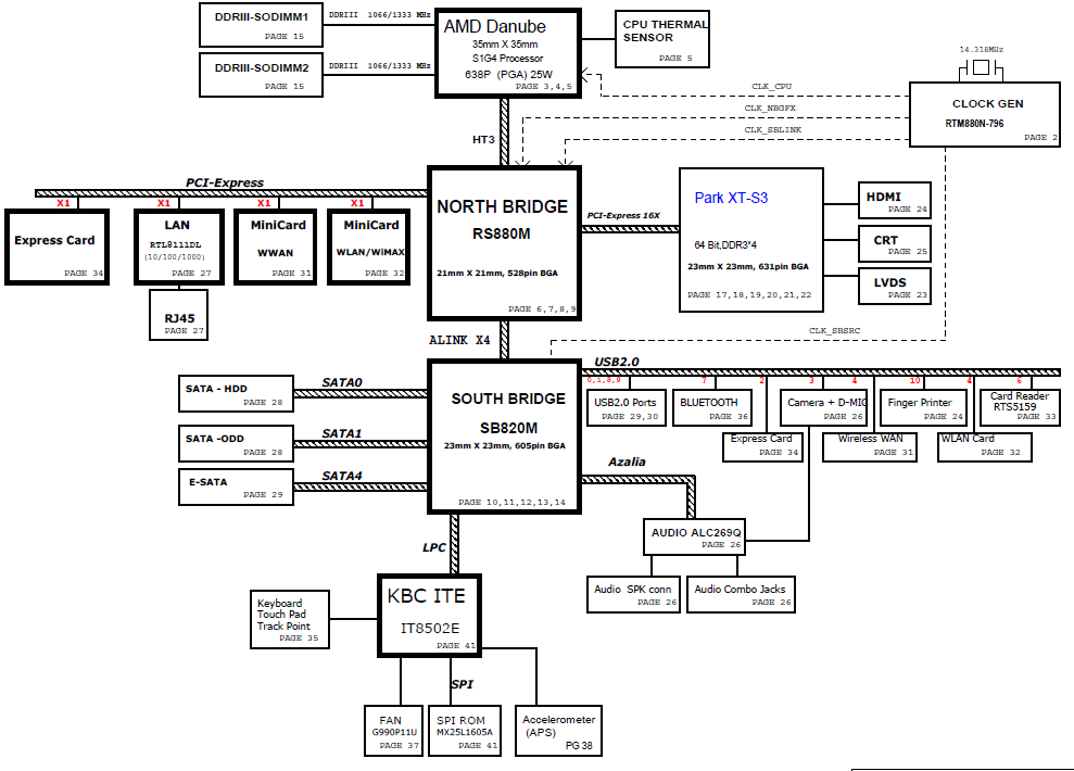 Also included: BoardView file and BoardView software Sistem Power block diagram Power On Sequence block diagram Power On Sequence timing diagram Major components: AMD Danube / RS880M +RS820M GPU: AMD Park XT-S3 (DIS) KBC: ITE8502E File type : PDF (Searchable) Language : English |