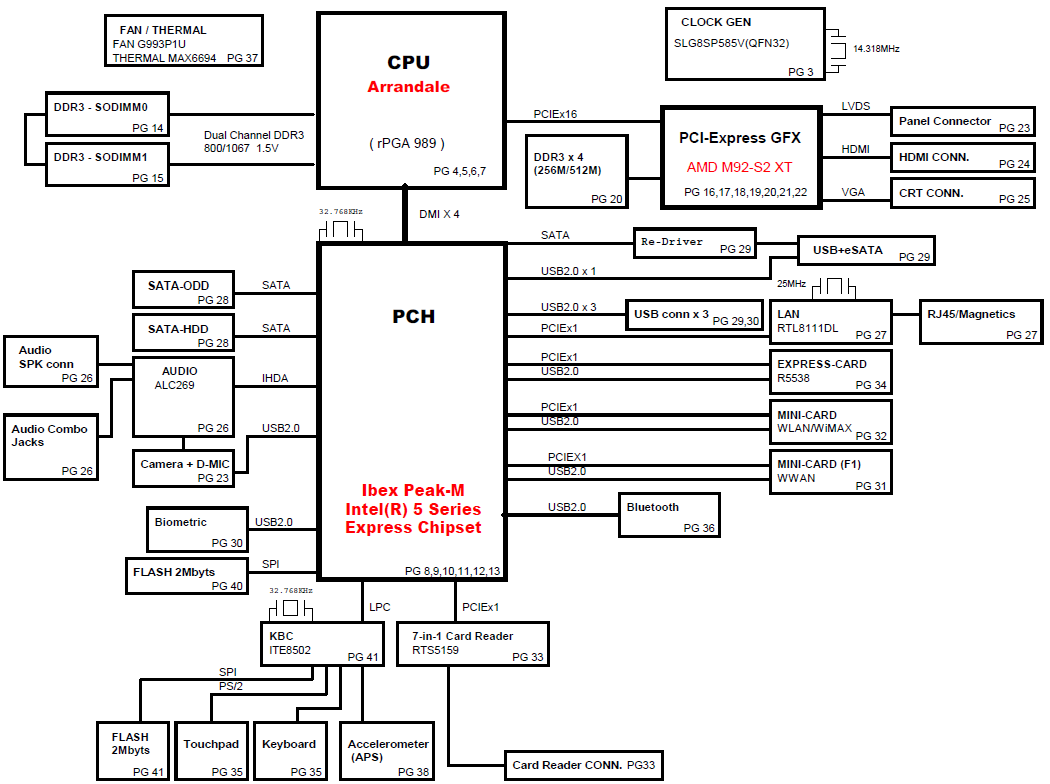 Also included: BoardView file and BoardView software Major components: Intel Arrandale / Ibex Peak-M PCH GPU: AMD M92-S2 XT (DIS) KBC: ITE8502 File type : PDF (Searchable) Language : English |