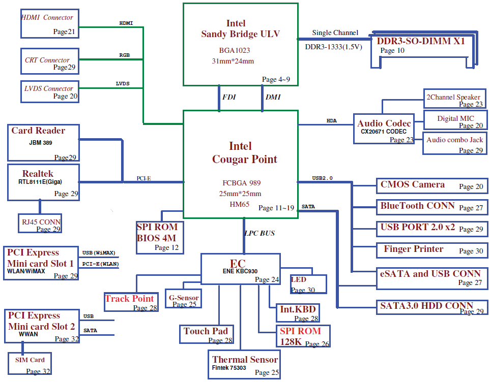 Major components: Intel Sandy Bridge Processor with DDRIII + Cougar Point PCH РЬ65 GPU: Integrated (UMA) KBC: ENE KBC930 File type : PDF (Searchable) Language : English |