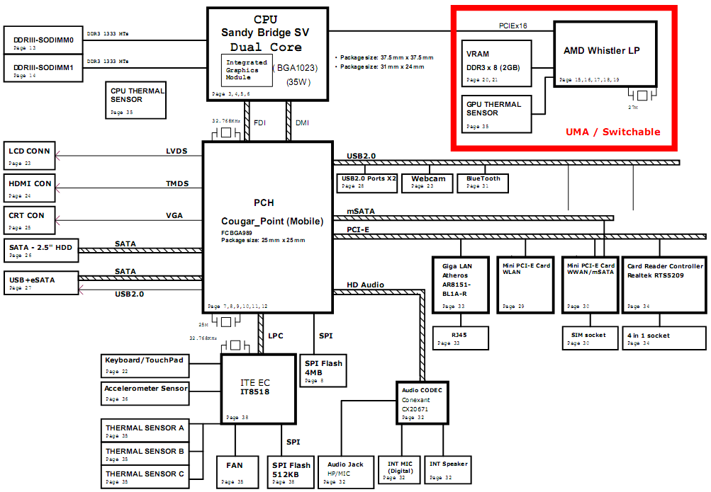 Also Included: BoardView file and BoardView software System Power Block diagram Major components: Intel Sandy Bridge + Cougar_Point PCH GPU: Integrated (UMA)/AMD Whistler LP (DIS) KBC: IT8518 File type : PDF (Searchable) Language : English |