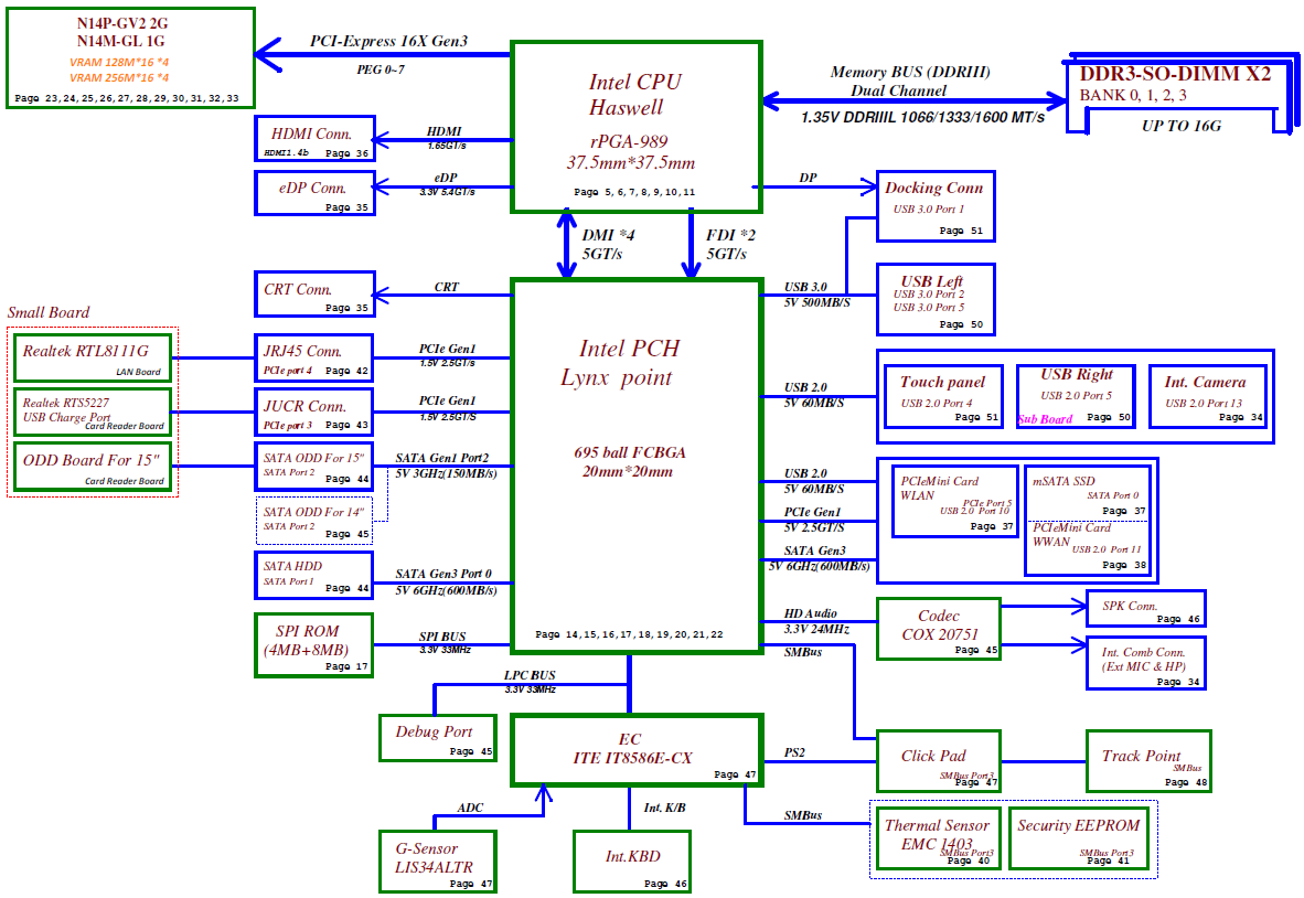Also included : — Component Placement Diagram (Silkscreen/searchable PDF file), it's not a boardview file such as: .TVW, .BRD etc... — System Power block diagram Major components: Intel Haswell Processor with DDRIII + Lynx point PCH GPU: Integrated (UMA)/ nVIDIA N14P-GV2/ N14M-GL (DIS) KBC: ITE IT8586E-CX File type : PDF (Searchable) Language : English |