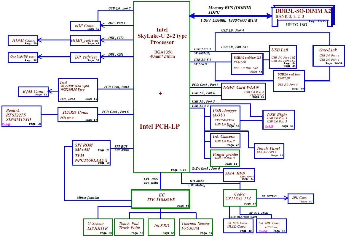 Also Included: 2 BoardView files and BoardView software (.CAD and .BRD Allegro) System Power Block diagram Major components: Intel SkyLake-U 2+2 PCH-LP GPU: (UMA) EC: ITE IT8586EX File type : PDF (Searchable) Language : English |