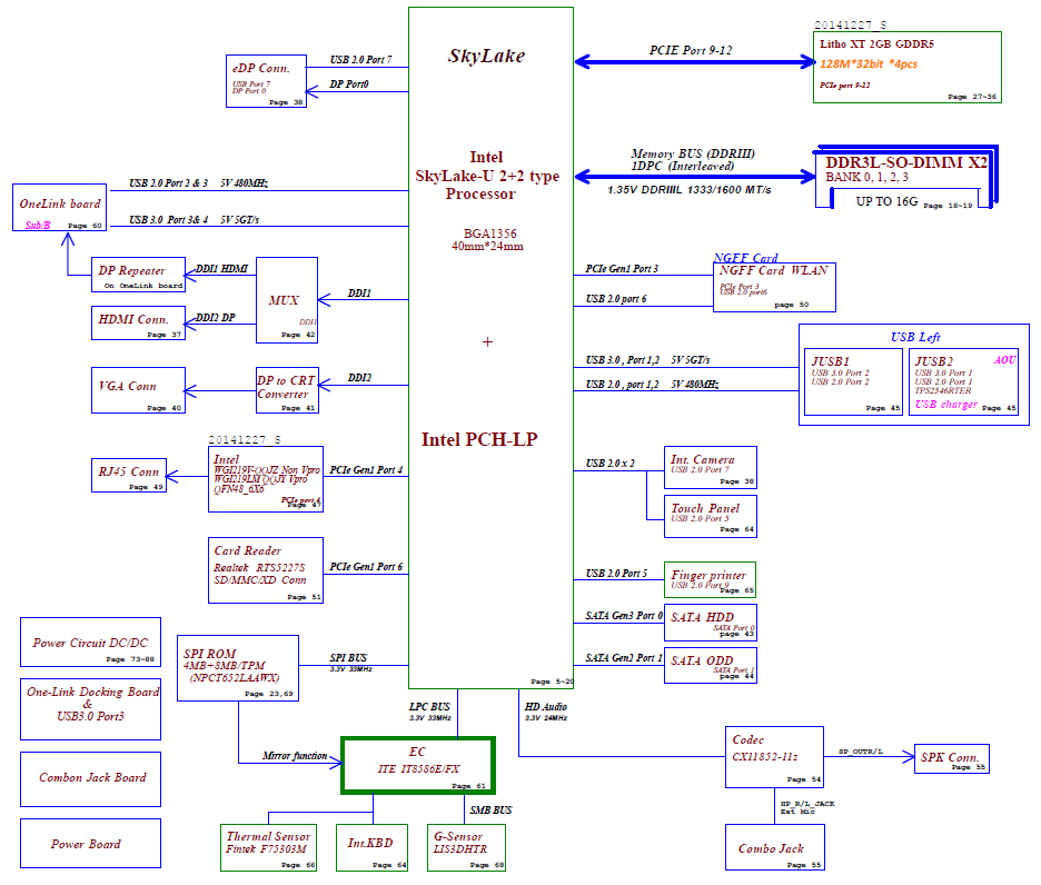 Also Included : — Component Placement Diagram (Silkscreen/searchable PDF file), it's not a boardview file such as: .TVW, .BRD etc... — System Power Block diagram Major components: Intel SkyLake-U 2+2 PCH-LP GPU: AMD Litho XT GDDR5 (DIS) EC: ITE IT8586E/FX File type : PDF (Searchable) Language : English |